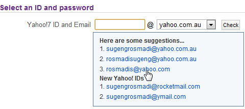 4. Tarik ke bawah, isikan nama email yang anda inginkan. Jika nama baru yang anda masukkan tidak tersedia silahkan memilih salah satu nama yang disediakan.