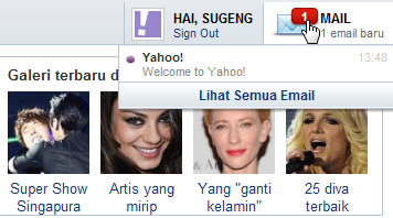 9. Selamat! Email yahoo anda sudah jadi. Lihat pojok kanan atas, untuk melihat email yang masuk dari team yahoo.